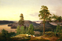 Ferdinand von Wrightin maisemamaalausten aiheet ovat etupäässä Haminalahden alueelta. Kotiympäristönsä puretun vanhan kartanon pihapiiriä hän maalasi muistinsa ja luonnostensa pohjalta. 1850-luvulla hän kuvasi korkeilta paikoilta nähtyjä laajoja sisävesimaisemia. Tunnetuin näistä on Näköala Haminalahdelta -teos. Tähän maalaukseen tiivistyi ehkä tahattomastikin ajan kansallisuusaate. Se innosti Sakari Topeliuksen nimittämään teosta Maamme-laulun uudeksi säkeistöksi.