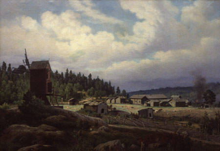 Savolainen taloryhmä, 1882. Kustaa Hiekan taidesäätiö Öljyväri kankaalle, 86x119.